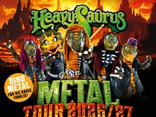 Vom Kinderzimmer bis aufs legendäre Wacken Open Air, vom Familienausflug bis zur Festivalbühne, von kleinen Clubs bis zu großen Hallen – HEAVYSAURUS spielen echten Metal für Groß und Klein. Vier Dinosaurier und ein Drache rocken die Bühnen mit einer Show, die Kinder wie Erwachsene gleichermaßen die „Pommesgabel“ recken lässt. Am 30.01.2026 erscheint das neue Album „METAL“ mit 15 brandneuen Songs. Anschließend gehen die fünf grüngeschuppten Helden mit der METAL Tour 2026/27 auf große Konzertreise, mit neuen Songs, neuer Show und altbewährter Dino-Power!